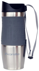 Термокружка Kamille с TPR-вставкой и ремешком (серая) 380 мл (2052)