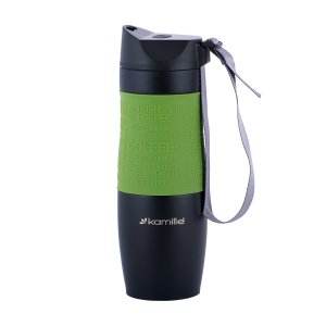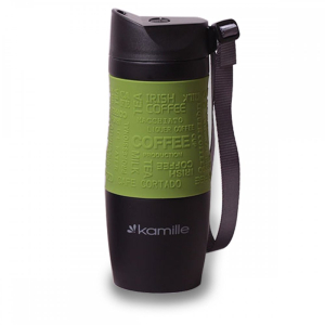 Термокружка Kamille с TPR-вставкой и ремешком (зеленая) 480 мл, 2067