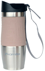 Термокружка Kamille с TPR-вставкой и ремешком (бежевая) 380 мл (2052)