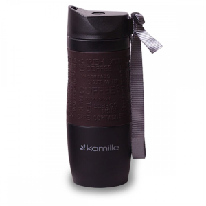 Термокружка Kamille с TPR-вставкой и ремешком (коричневая) 380 мл (2052A)