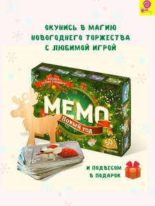 Настольная игра Мемо Новый год и подвес на елку в комплекте