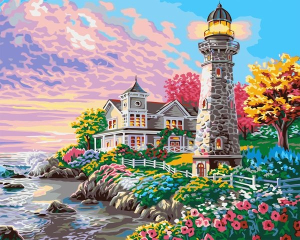 Картина по номерам 40х50 Цветочный сад у маяка (VA-0585)
